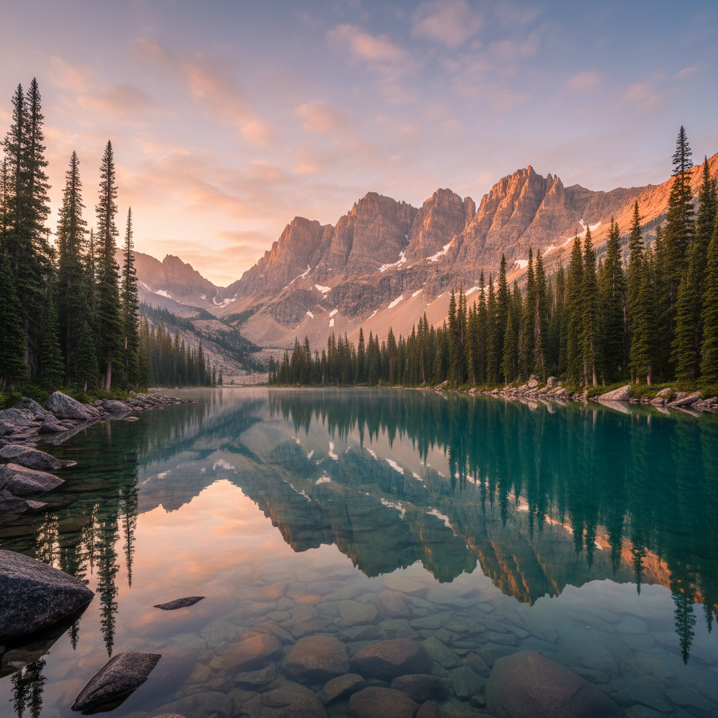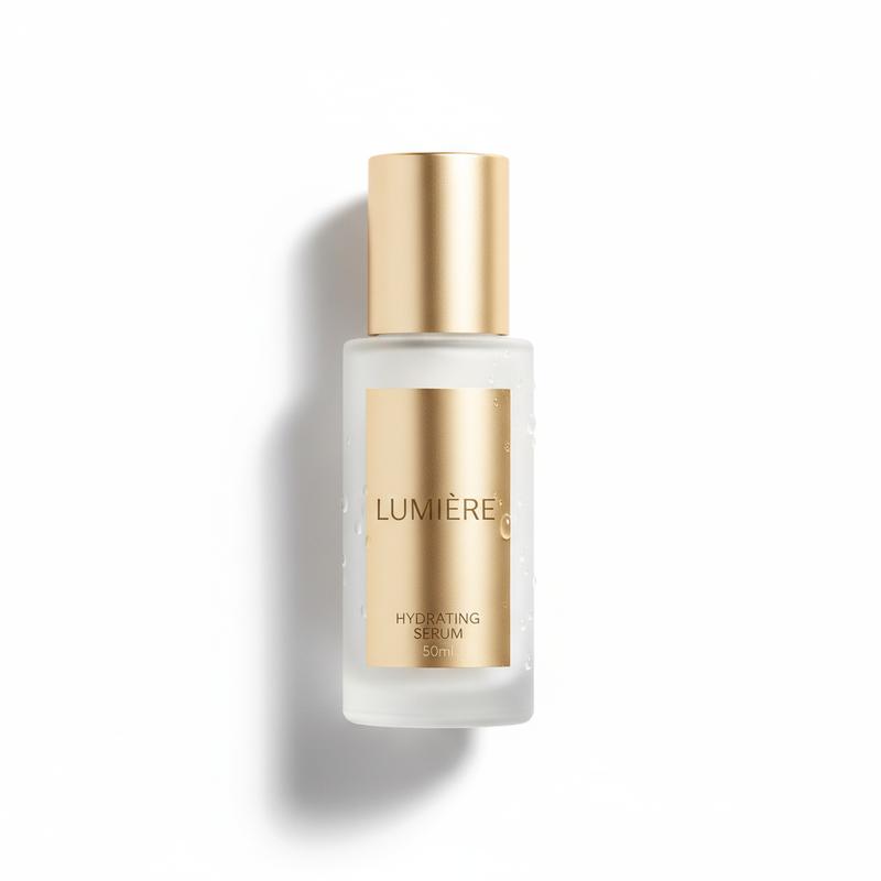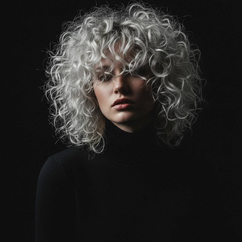 A dreamlike portrait of a woman with flowing iridescent hair, soft golden hour light casting gentle shadows, surrounded by floating cherry blossoms in a serene Japanese garden.