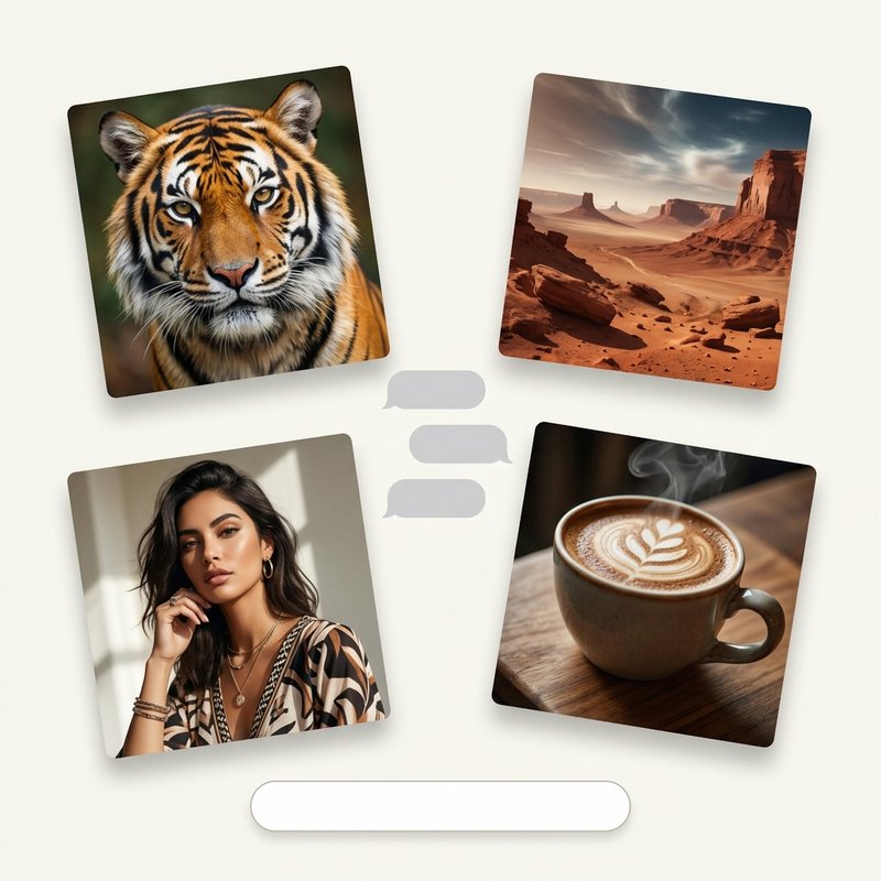 Describe what you want to create and the agent generates images, videos, and suggestions for you. Just chat naturally.